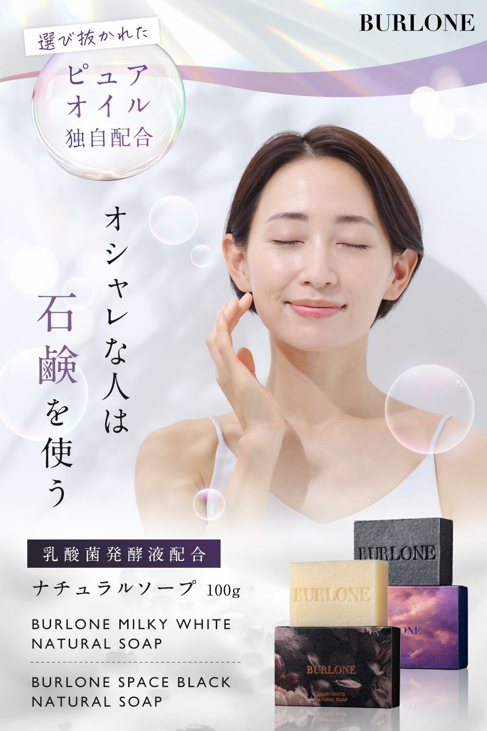 厳選された素材で肌の弱い方にもおすすめの乳酸菌発酵液配合ナチュラルソープです。天然成分たっぷりのコールド製法で熟練の職人が丁寧に仕上げた石鹸、BURLONE natural soap スペースブラック。豊かな泡立ちで、お肌をしっとり滑らかに保ちます。美容成分も豊富に含まれており、お肌のキメを整える効果も期待できます。また、天然由来の成分なので、肌に優しい使い心地が特徴。スペースブラックはできるだけ自分のニオイを他の人に気にして欲しく無い方、夏の体臭が気になる時期や加齢によって体臭が気になってきた方にもオススメの石鹸です。